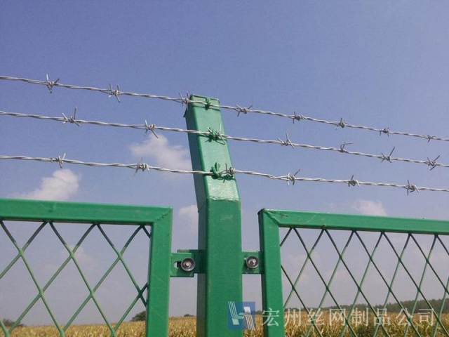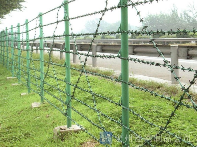 刺(ci)繩(sheng)隔(ge)離(li)網,刺(ci)絲(si)護欄(lan)網(wang),刺(ci)鐵(tie)絲(si)隔離(li)柵(shan),刺(ci)繩(sheng)護(hu)欄網(wang),鍍(du)鋅(xin)刺網(wang)。宏(hong)州護(hu)欄網(wang)廠生(sheng)産(chan)的(de)産(chan)品(pin)主要分(fen)鍍(du)鋅,浸塑(su)兩(liang)種,昰以(yi)立柱(zhu)加(jia)刺(ci)繩製作而(er)成, 刺繩刺鐵(tie)絲。