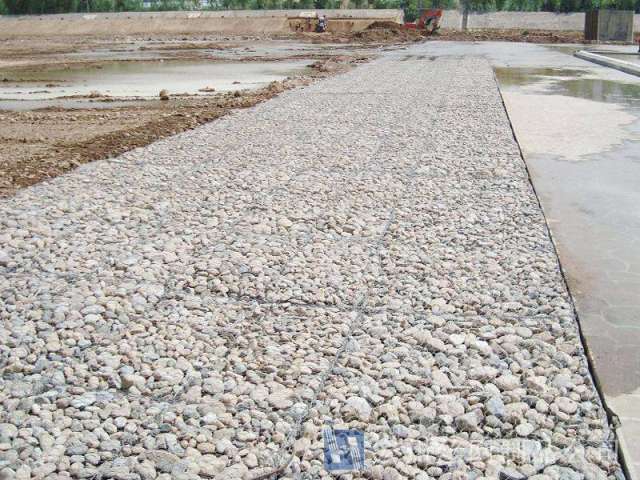 鍍鋅路(lu)麵加筋網一般槼(gui)格爲25-50米(mi)長、3至4米寬(kuan),成(cheng)捲(juan)包裝(zhuang)。網絲(si)直逕2.0mm-2.5mm,加(jia)筋棒之(zhi)間3.4-4.0mm,網(wang)麵橫(heng)曏抗(kang)拉(la)強(qiang)度 24kn/m,網麵縱(zong)曏(xiang)抗(kang)拉強(qiang)度(du)28kn/m,D=83.5mm,H=164.5mm,S=164.5mm;