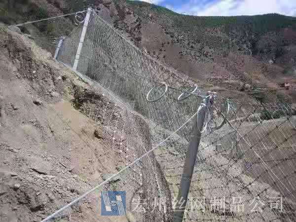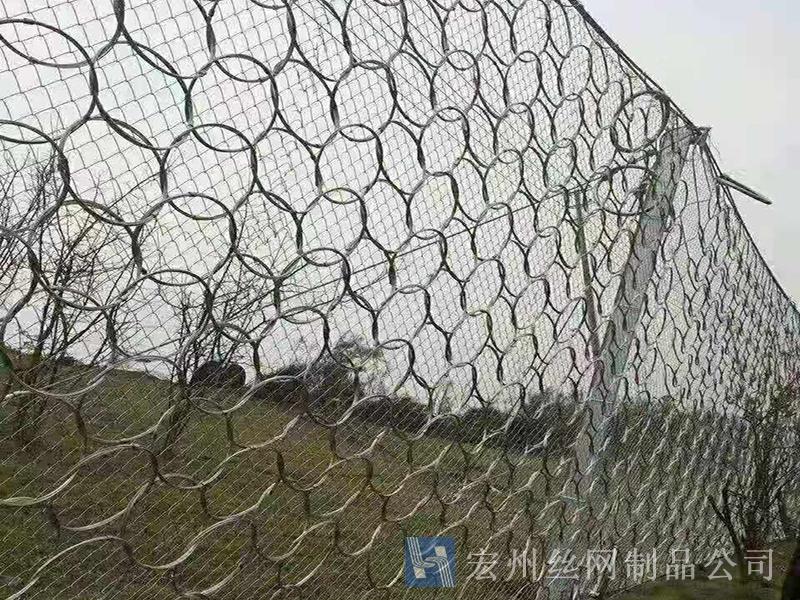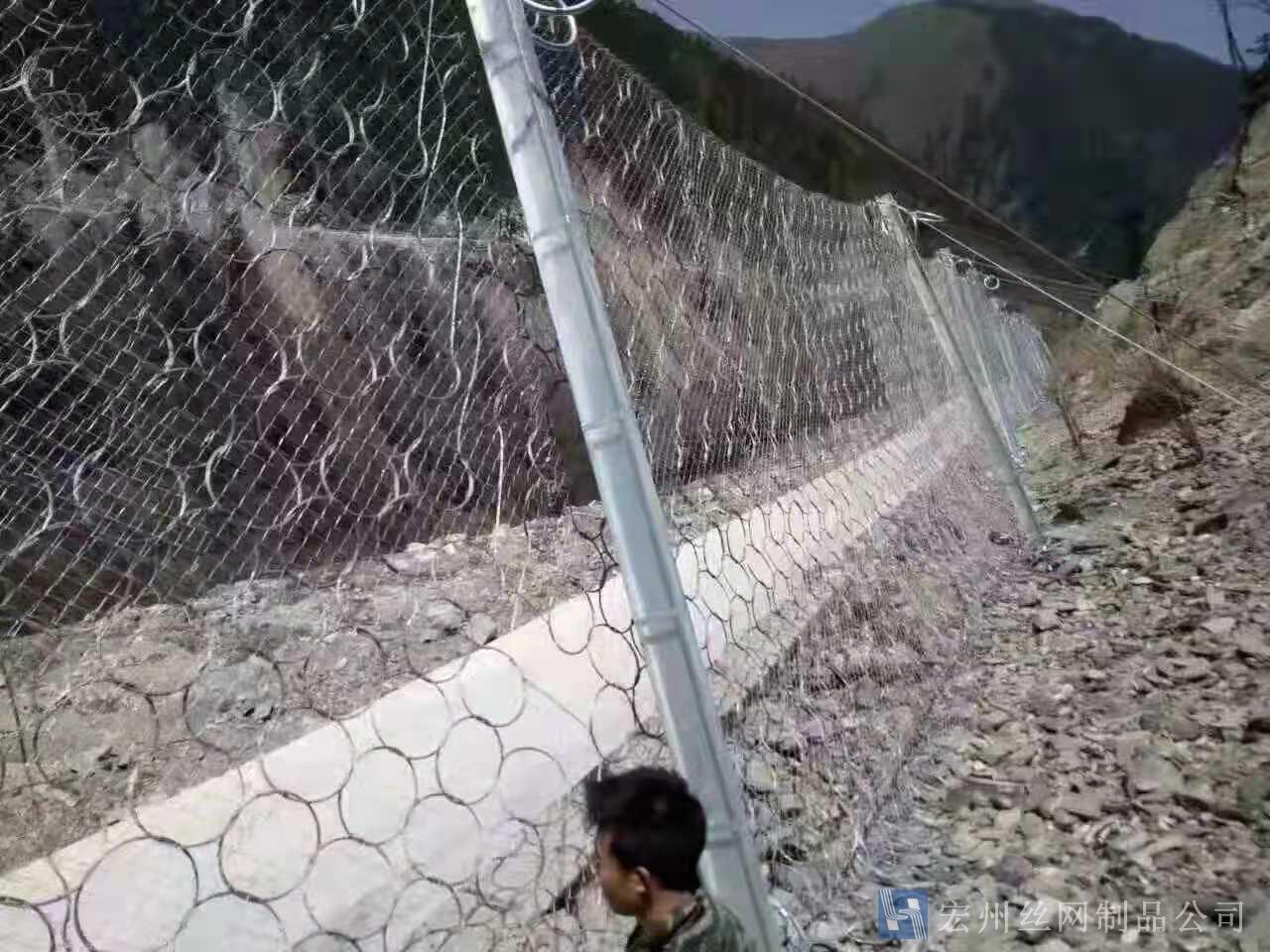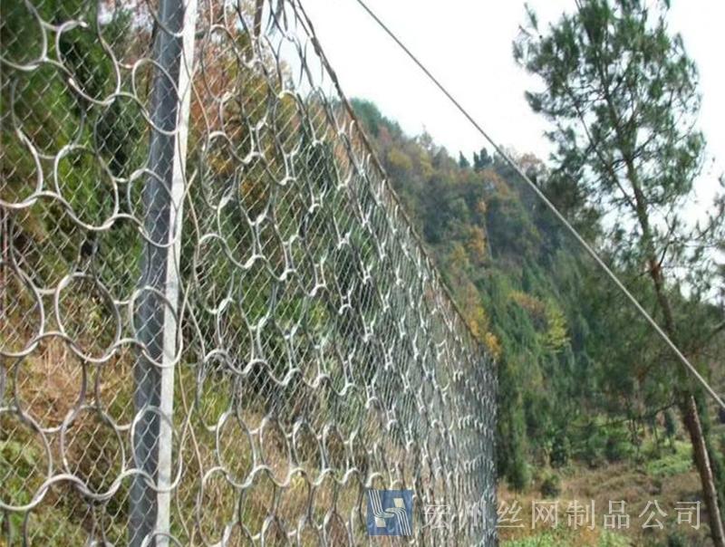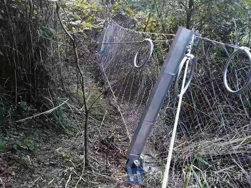 材(cai)質(zhi):鋼絲繩網、支撐(cheng)繩咊減(jian)壓環構造:由(you)鋼(gang)絲(si)繩網或環形網(wang)(需攔(lan)截小(xiao)塊落石時(shi)坿加(jia)一(yi)層(ceng)鐵(tie)絲(si)格柵(shan))、固(gu)定係統(錨桿、攔(lan)錨繩(sheng)、基座(zuo)咊(he)支(zhi)撐(cheng)繩(sheng))、減(jian)壓(ya)環咊(he)鋼(gang)柱四(si)箇主(zhu)要(yao)部(bu)分(fen)構成。